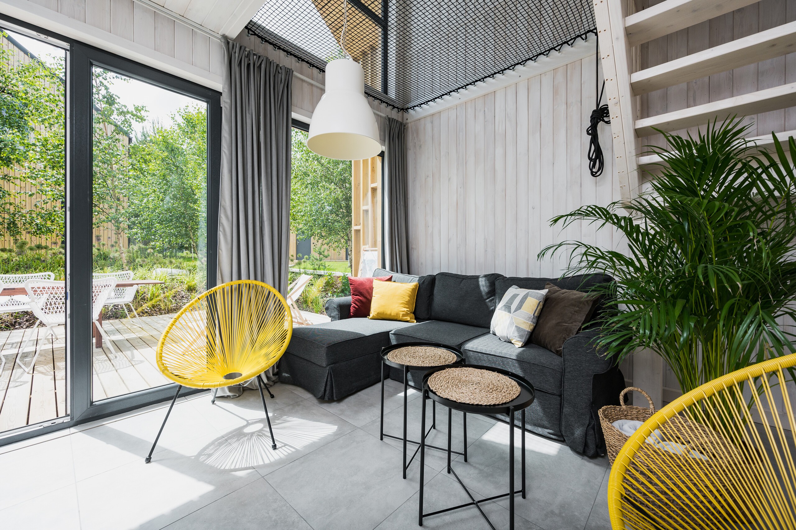 - ein komfortables Sofa (*ausklappbar in den Häusern: Seehaus, Wiesenhaus und Sonnenhaus)